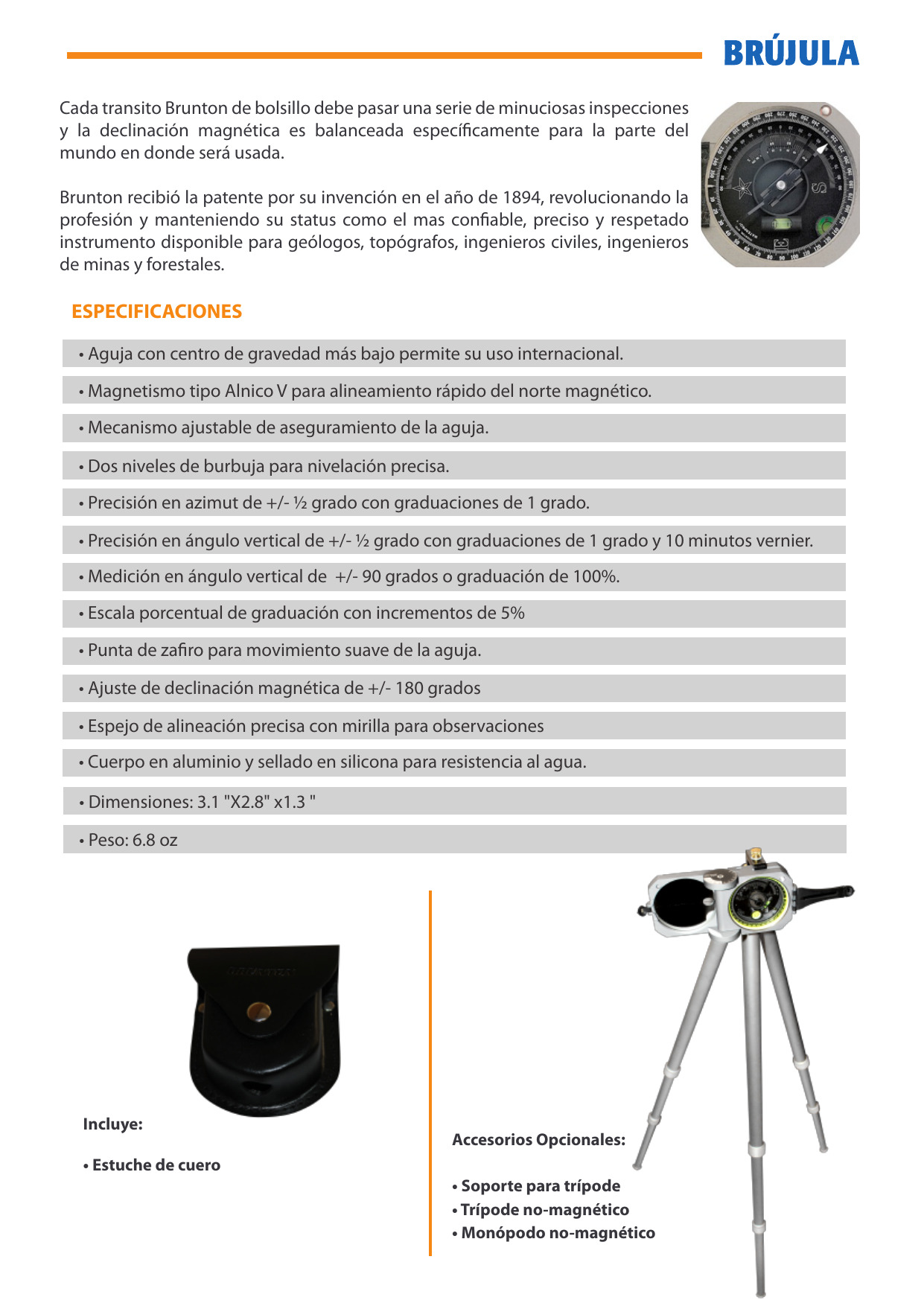 BRUJULA BRUNTON – > MARCA: BRUNTON -> MODELO: 5006 LM ; realizamos entrega en las ciudades de Lima, Arequipa, Cusco , Moquegua , Tacna , Ica , Chiclayo , Trujillo, Cajamarca, Piura, Tumbes, iquitos, Huancayo , Ayacucho , Pucallpa, Huanuco , Cerro de Pasco ; llevamos mas de 10 años comercializando BRUNTON en Peru , somos especialistas importando brujula brunton , brujulas , brujula geologica, instrumentos de orientacion geograficaBrújula BRUNTON 5006 LM