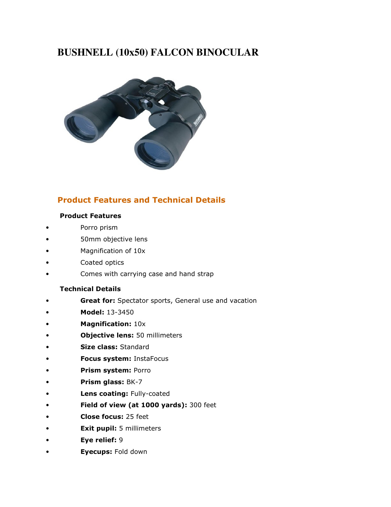 BINOCULAR BUSHELL MARCA: BUSHNELL MODELO: FALCON