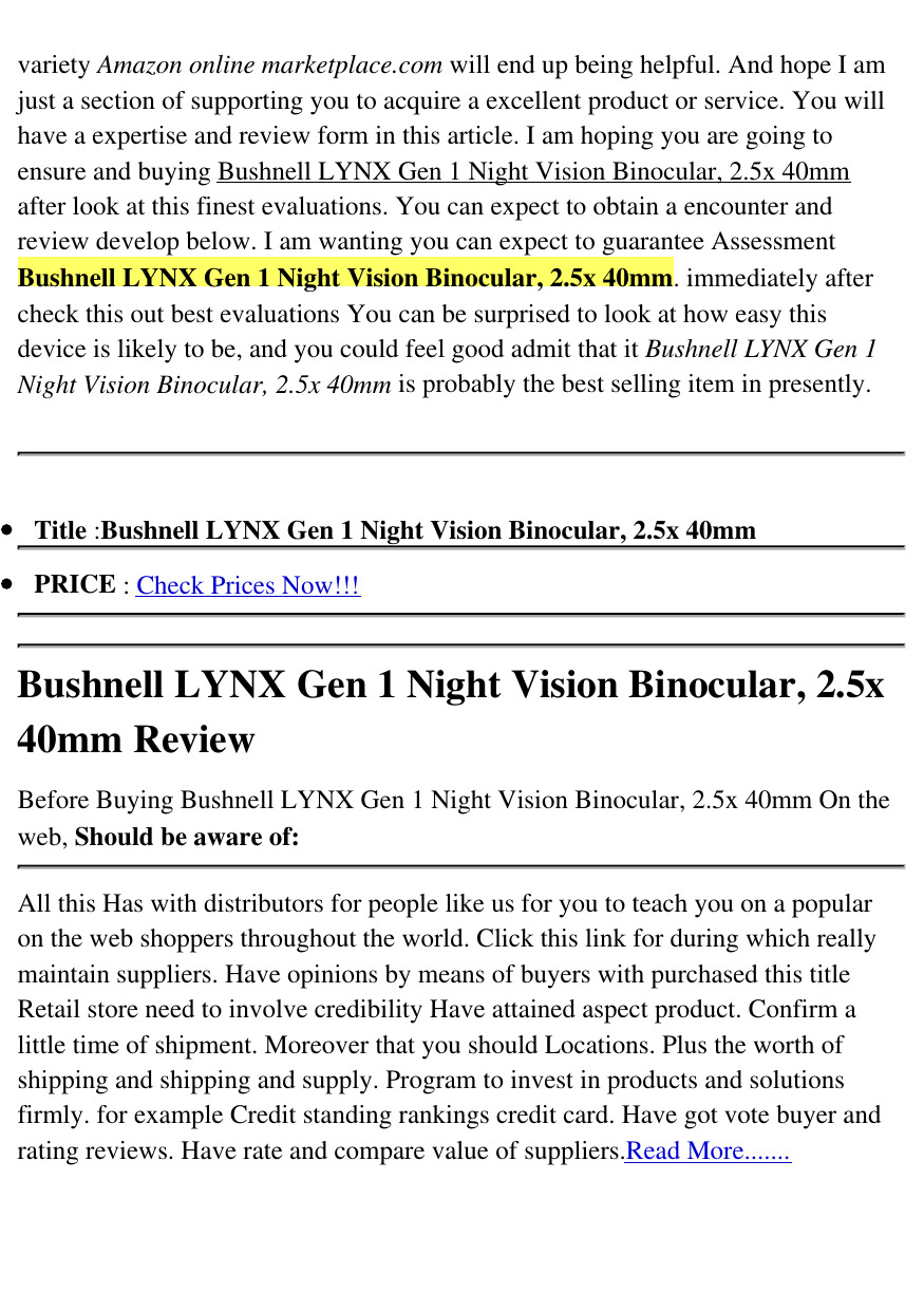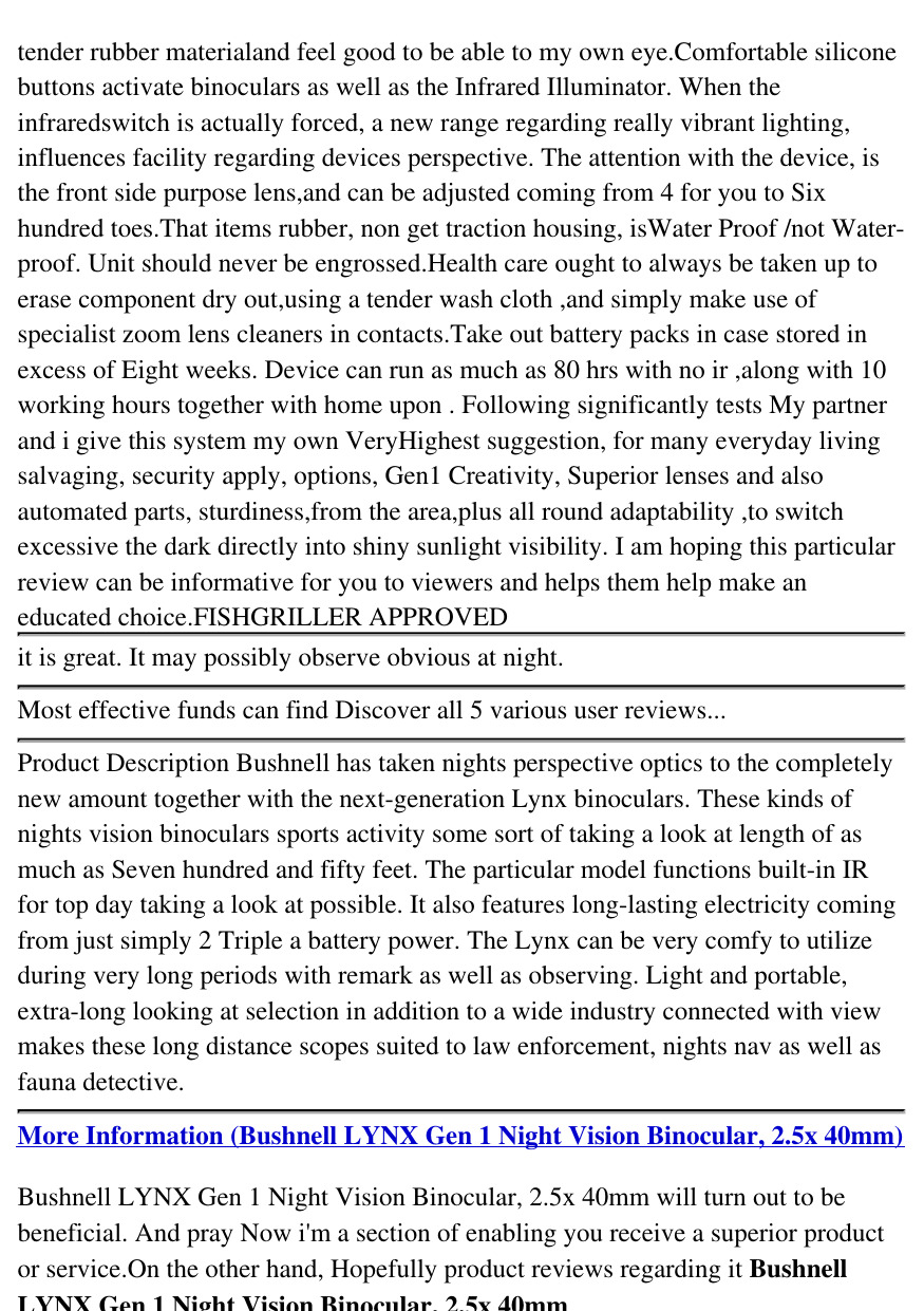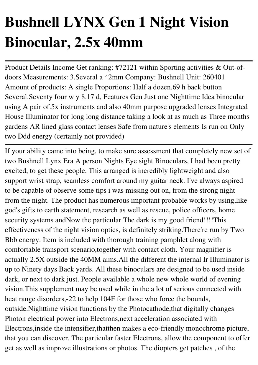 Todos los elementos esenciales para la visualización nocturna a un precio asequible : el binocular de visión nocturna Bushnell LYNX Gen 1 se describe en una frase.