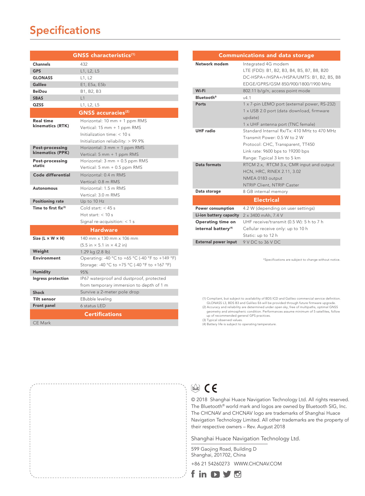 Horizontal: 3 mm + 0.5 ppm RMS Vertical: 5 mm + 0.5 ppm RMS