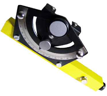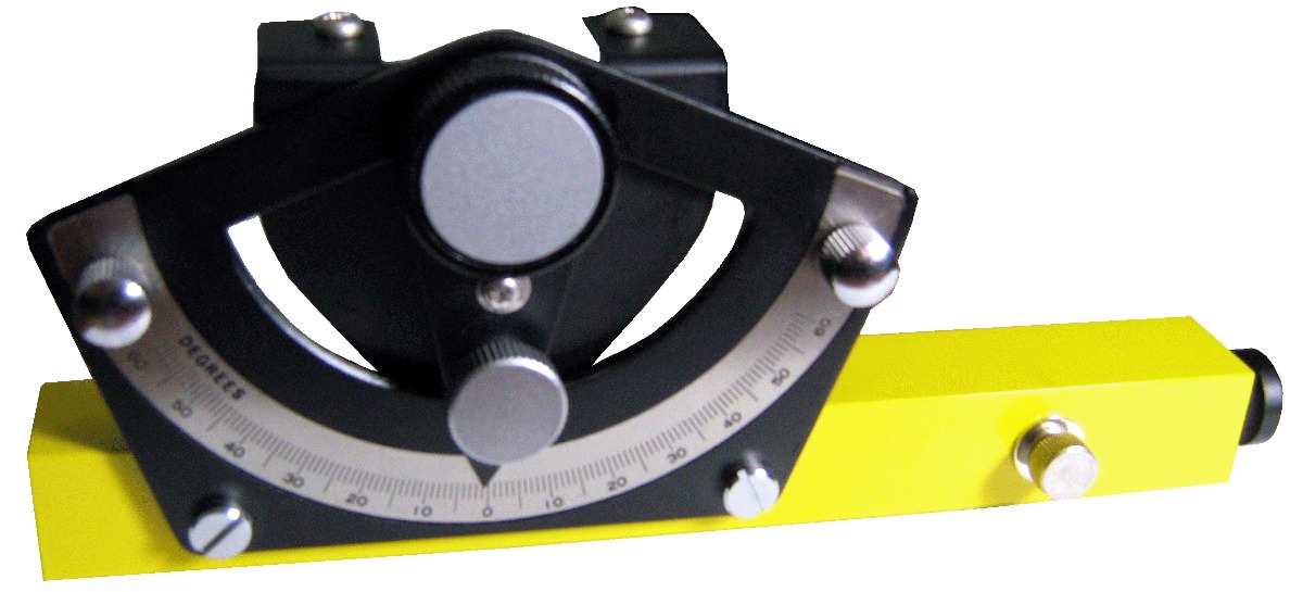 Un arco graduado en grados, de 0 ° a 60 ° en ambas direcciones