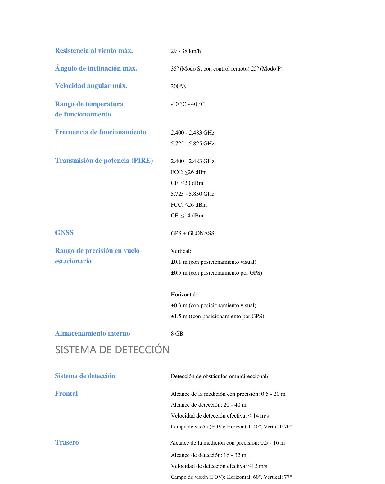Especificaciones: