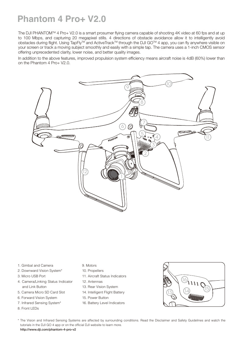 El Phantom 4 Pro+ cuenta con dos módulos de brújula y dos unidades IMU, añadiéndole fiabilidad respecto a muchos otros hexacópteros y octocópteros. El DJI Phantom 4 Pro Plus compara constantemente los datos que recibe a través de los pares de brújulas y IMU, y usando sus algoritmos desecha los datos que sean inexactos, sin que afecte al vuelo.