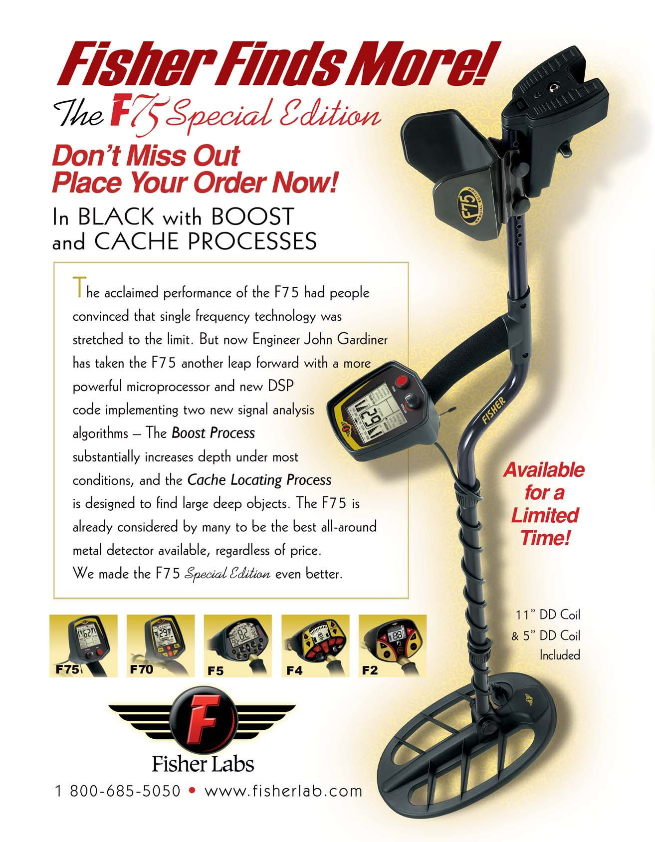 El aclamado desempeño del detector de metales F75 hizo que la gente estuviera convencida de que la tecnología de una sola frecuencia se extendía hasta el límite. Pero ahora el ingeniero John Gardiner ha dado otro paso adelante al F75 con un microprocesador más potente y un nuevo código DSP que implementa dos nuevos algoritmos de análisis de señal: el “Proceso de refuerzo” aumenta sustancialmente la profundidad en la mayoría de las condiciones, y el “Proceso de localización de caché” está diseñado para Encuentra objetos grandes y profundos.