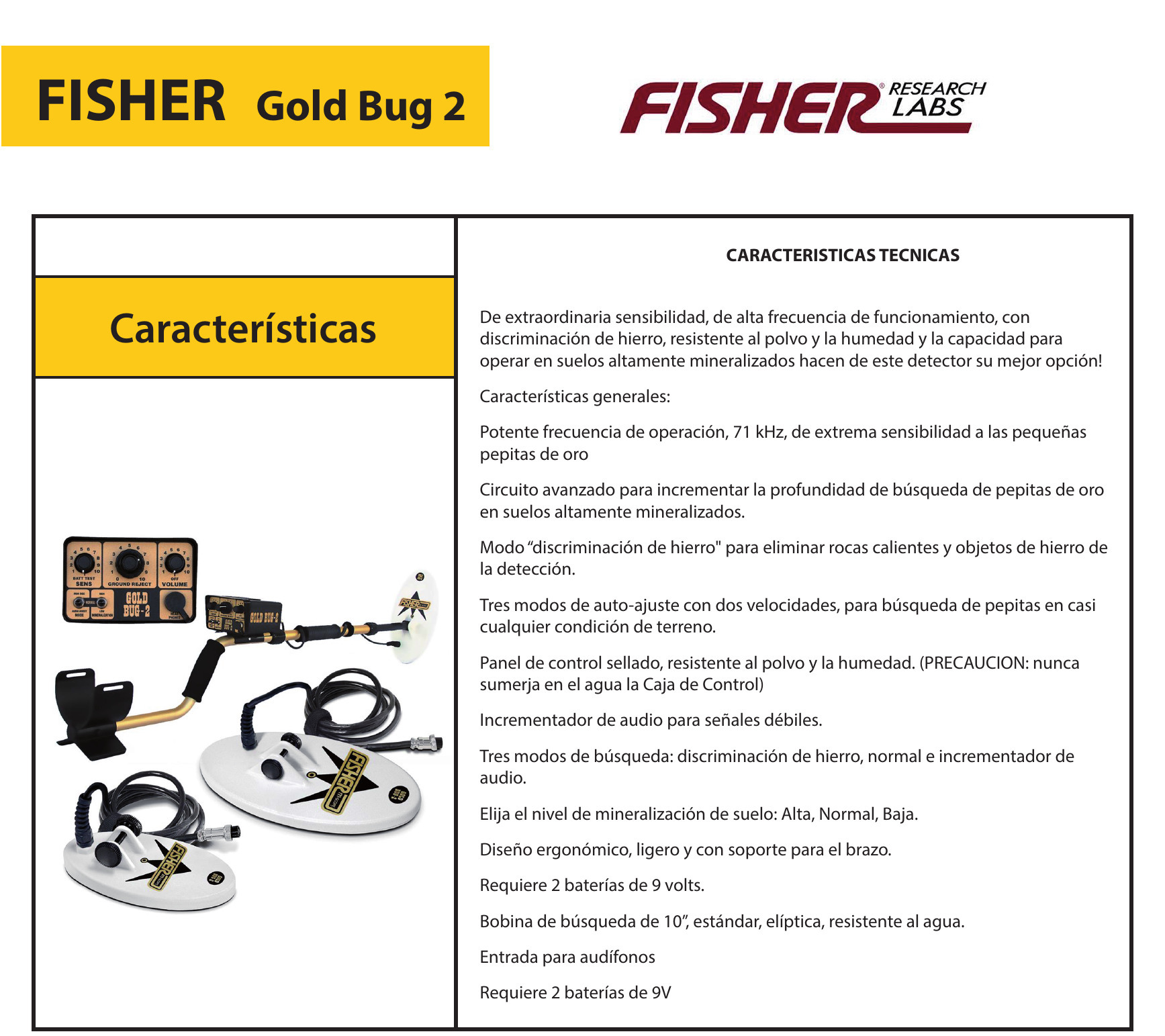Características de Fisher Research Labs Gold Bug 2