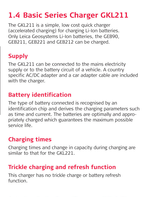 1 Leica GKL211Cargador para baterías Leica GEB211, GEB221 y GEB212.