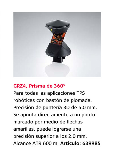 PRISMA CON PORTAPRISMA – > MARCA: LEICA -> MODELO: GRZ4 ; realizamos entrega en las ciudades de Lima, Arequipa, Cusco , Moquegua , Tacna , Ica , Chiclayo , Trujillo, Cajamarca, Piura, Tumbes, iquitos, Huancayo , Ayacucho , Pucallpa, Huanuco , Cerro de Pasco ; llevamos mas de 10 años comercializando LEICA en Peru , somos especialistas importando prisma con portaprisma , prismas para estacion total , prisma leica, miniprismaPrisma LEICA GRZ4 de 360º