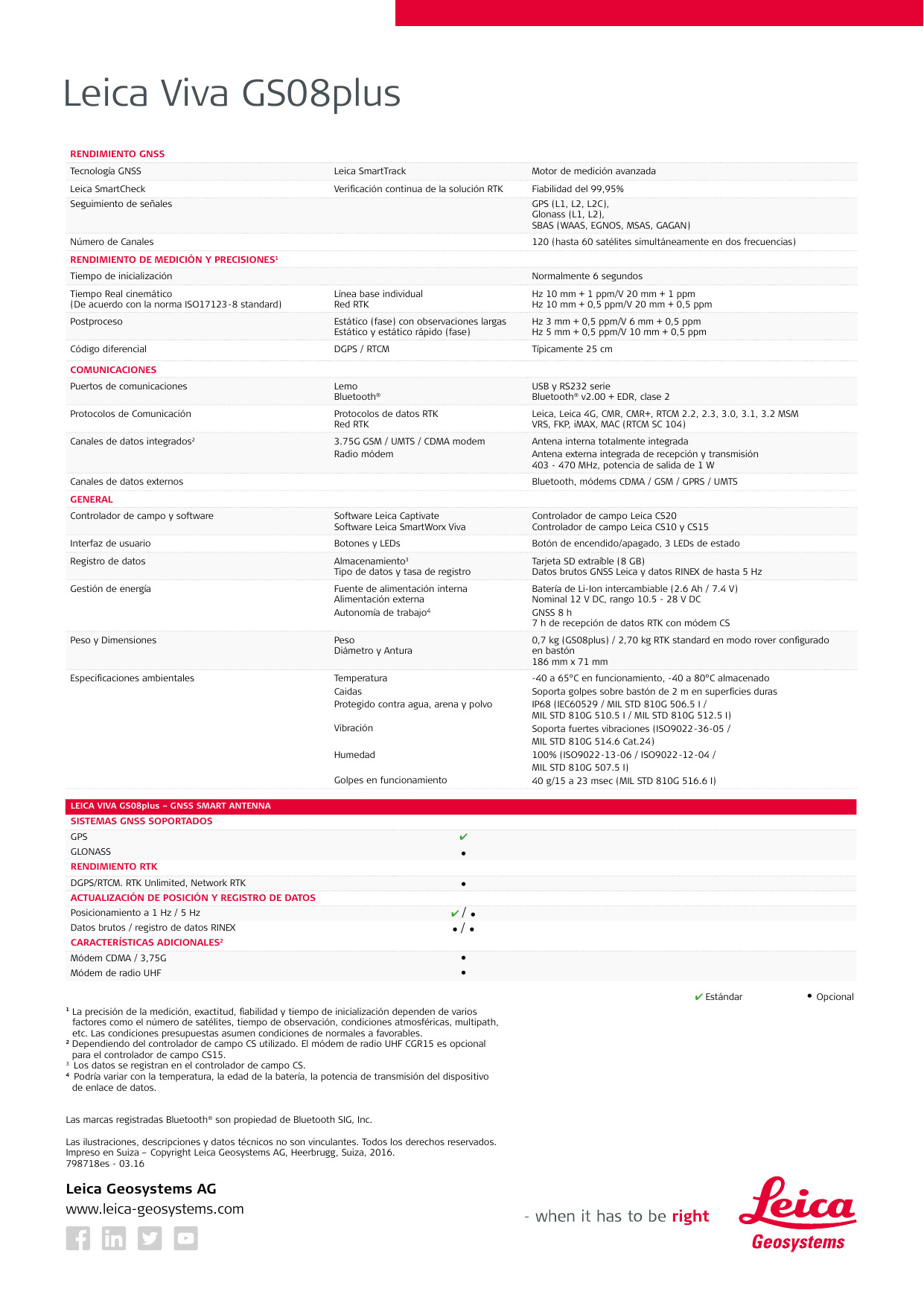 Le proporciona la configuración de un receptor de GNSS inalámbrico más compacto. Ligero y flexible, el GS08plus es la elección perfecta para una amplia gama de tareas topográficas.