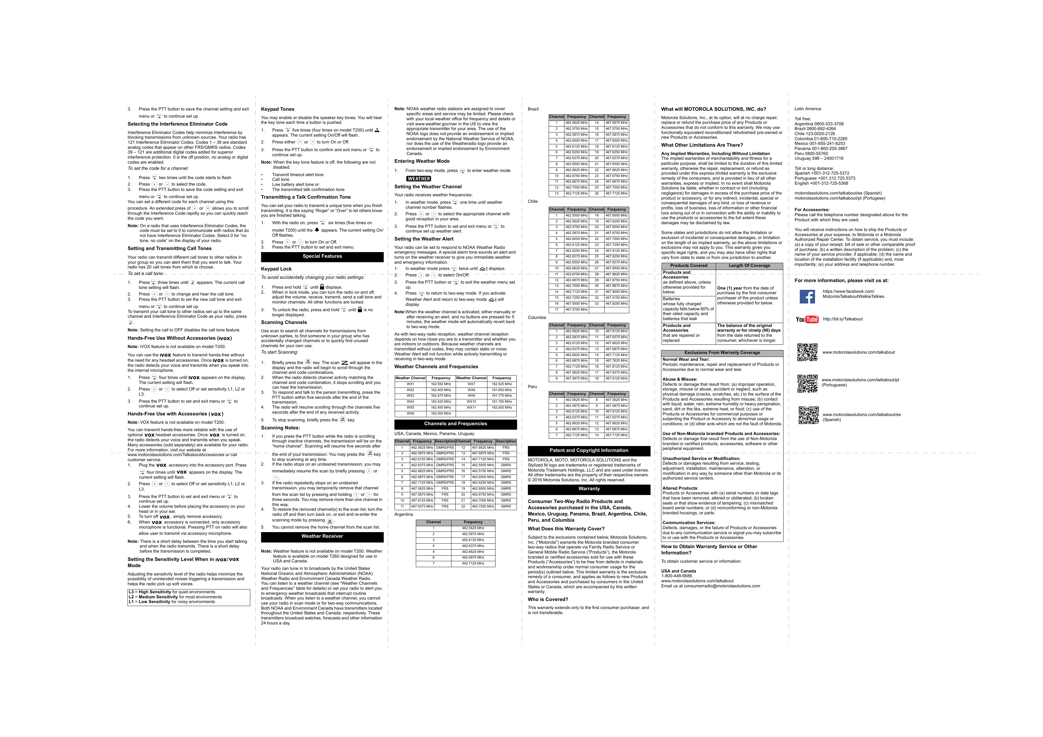 22 canales con códigos de privacidad, operación de manos libres, 20 tonos de llamada y recibe alertas meteorológicas de EC Canada Weather Radio VIDEO REFRENCIAL: