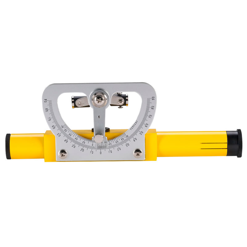 Eclímetro de 6-3/8″ pulgadas de longitud, con dos arcos intercambiables arco graduado en grados, de 0° a 60° en ambas direcciones, el otro arco graduado en escala topográfica.