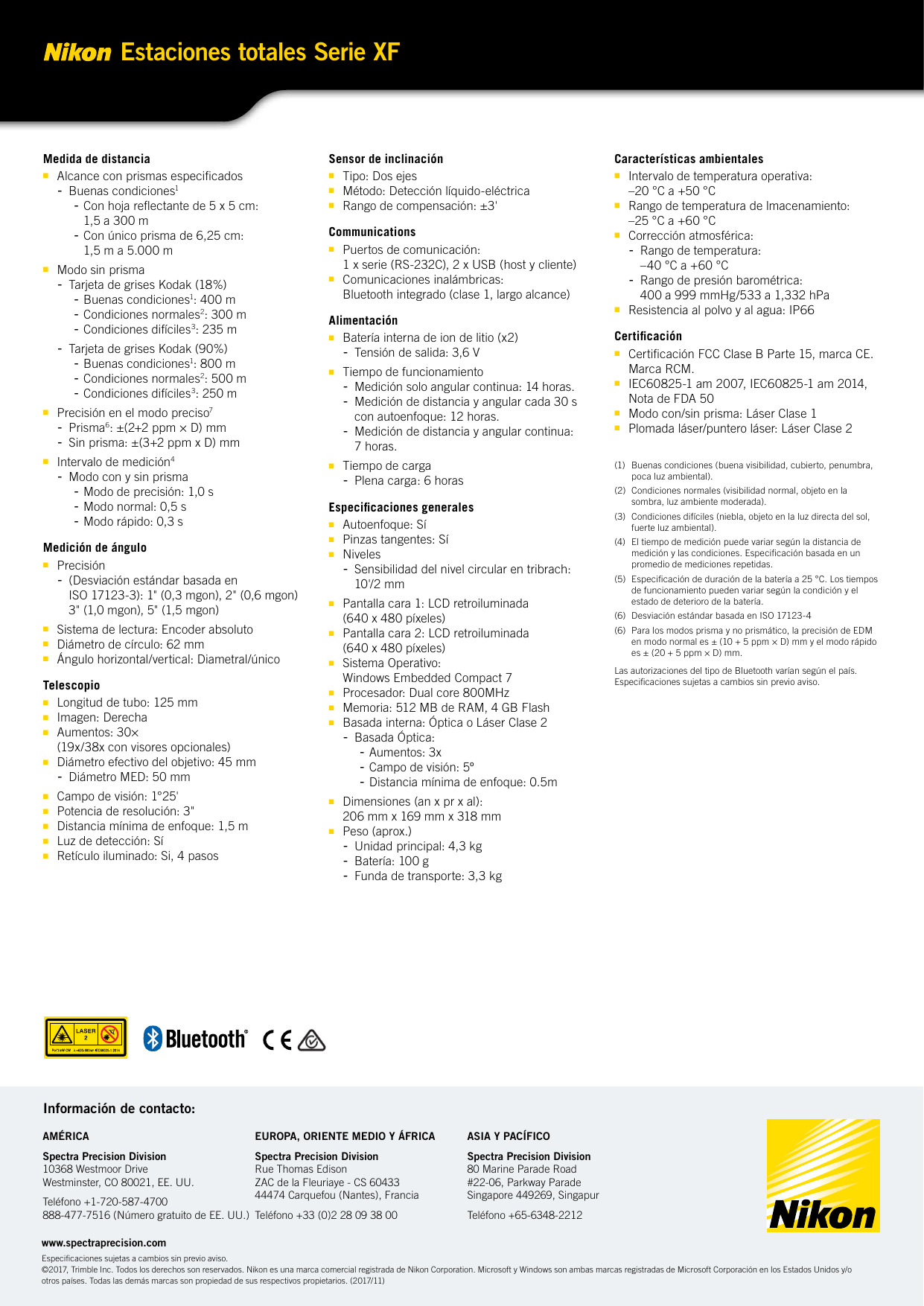 Estación Total Láser de alta precisión con sistema operativo Windows de última generación, pantalla Touch Screen y sistema Autofocus, marca NIKON, modelo XF, de 5″ de precisión angular.