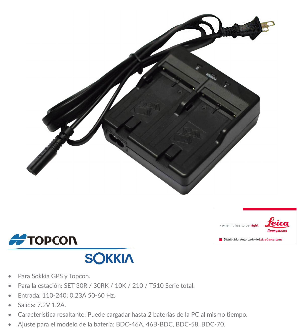 CARGADORES – > MARCA: SOKKIA -> MODELO: CDC68 ; realizamos entrega en las ciudades de Lima, Arequipa, Cusco , Moquegua , Tacna , Ica , Chiclayo , Trujillo, Cajamarca, Piura, Tumbes, iquitos, Huancayo , Ayacucho , Pucallpa, Huanuco , Cerro de Pasco ; llevamos mas de 10 años comercializando SOKKIA en Peru , somos especialistas importando cargadores, cargador para baterias , cargador sokkia, cargador dualCargador SOKKIA CDC68