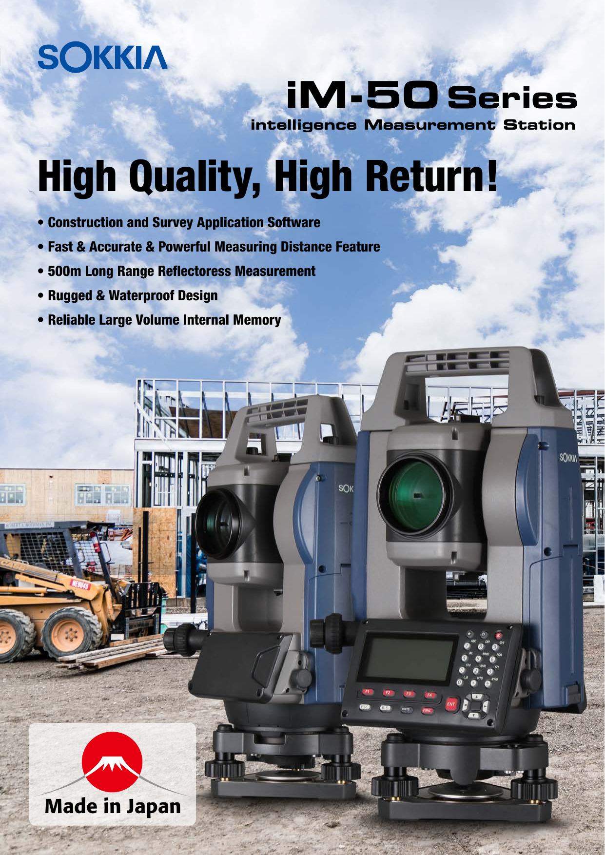 El iM-50 también está equipado con un EDM de primera línea, un generoso almacenamiento de memoria interna y software integrado SDRbasic para que tenga todo lo que necesita para hacer el trabajo en el campo.