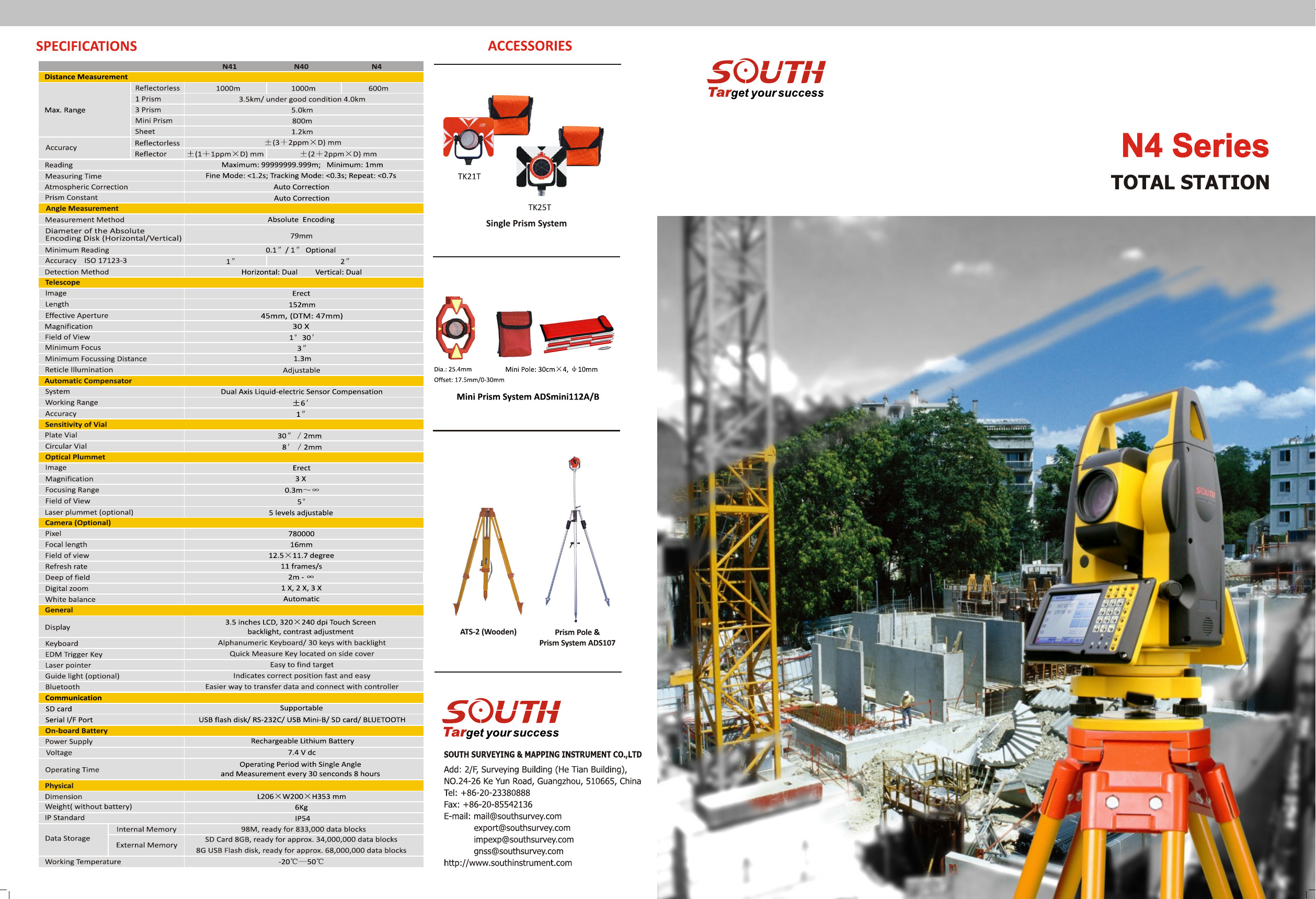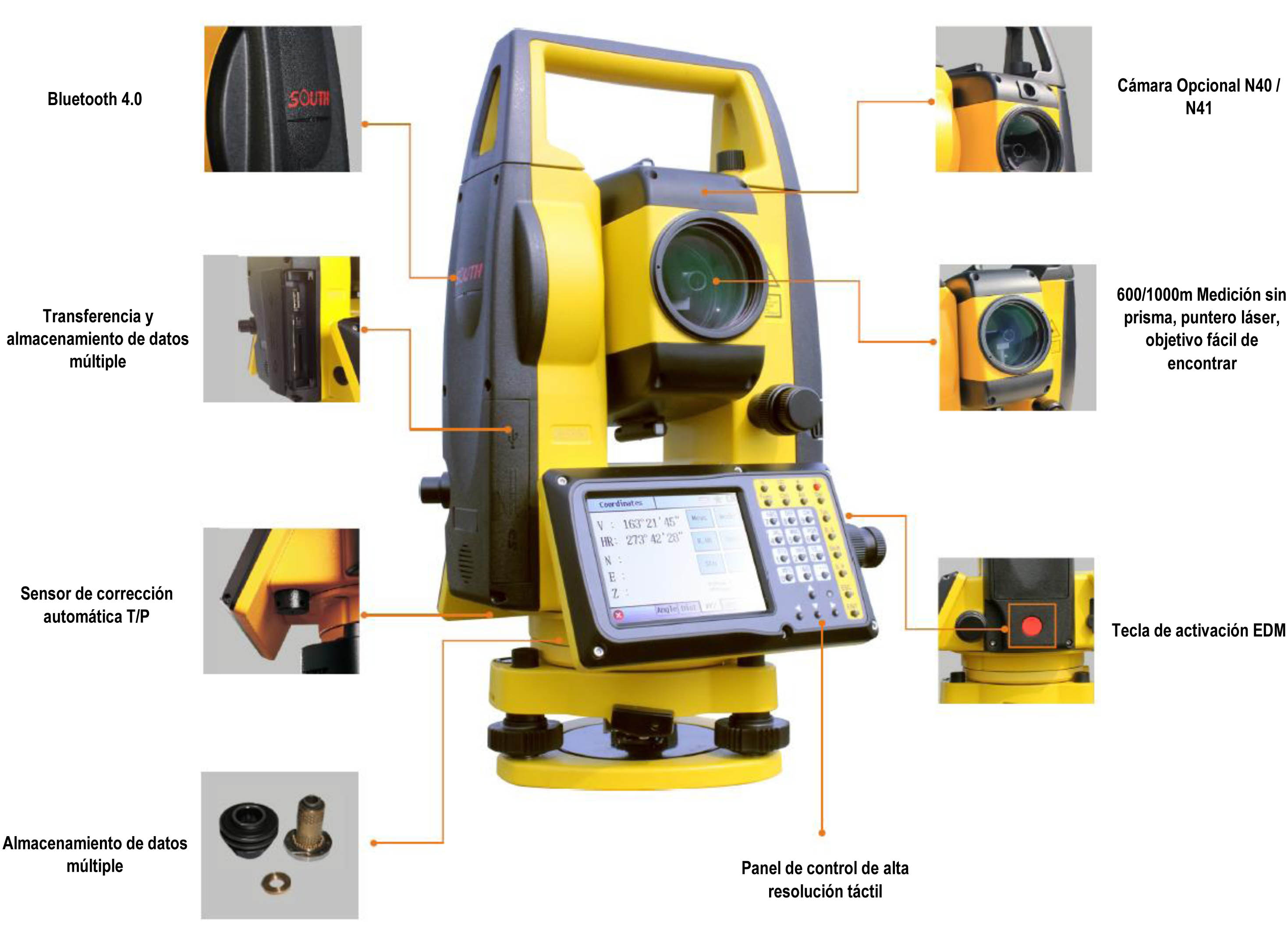 La Nueva Estación Total SOUTH N4 ofrece medición sin prisma hasta 600metros. Para trabajos profesionales con operaciones graficas a colores.