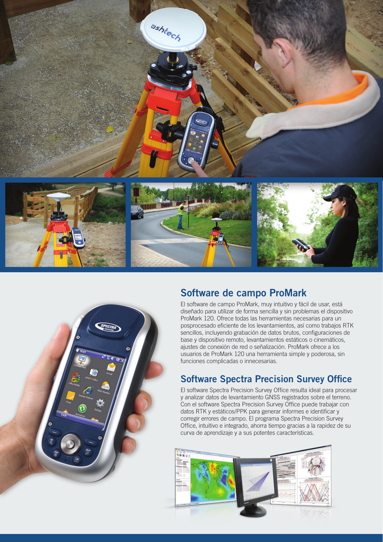 El Promark 120 es la más reciente solución de post-proceso versátil y practica, diseñada para aplicaciones de topografía sencillas y eficientes. Cada unidad ProMark 120 incluye un resistente receptor GNSS, con sistema operativo Windows Handheld 6.5, con software ProMark Field abordo, diseñado para un uso sencillo y sin problemas, proporciona todas las herramientas necesarias, sin molestar con características innecesarias o complicadas y en esta opción que ofrecemos, viene con antena ASH-661 L1/L2 GNSS , para una fácil actualización a doble frecuencia.