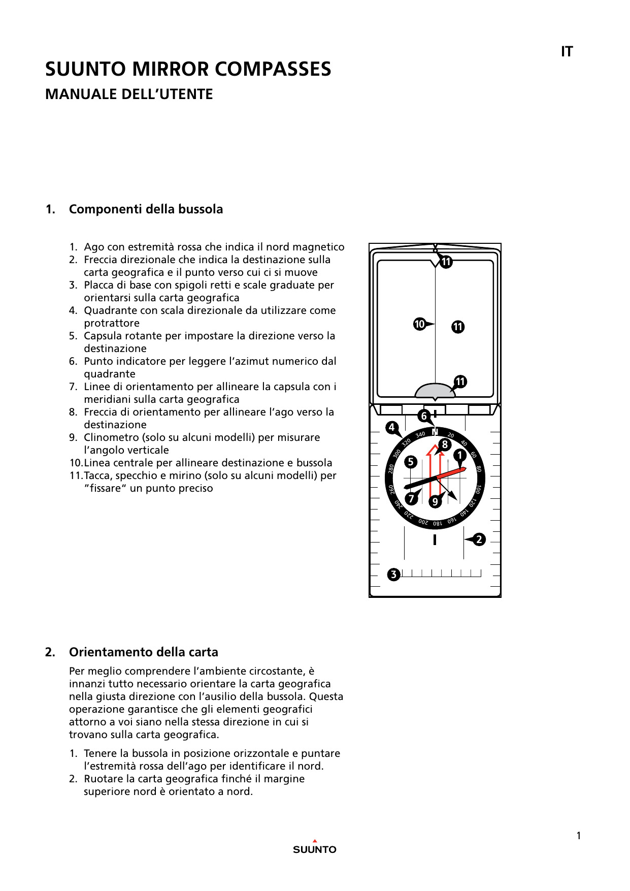 Suunto MC-2 G Mirror Compass con cordón con cierre rápido para muñeca, herramienta de corrección de la declinación y Guía de referencia rápida
