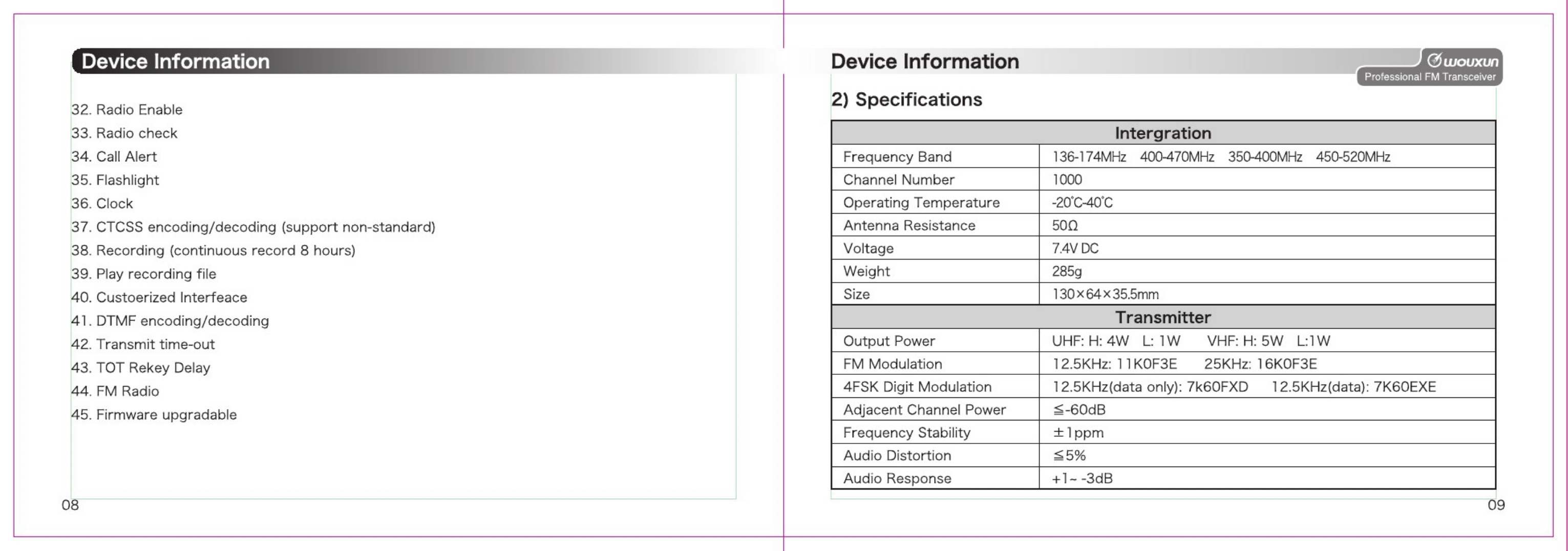 Selectividad de canal adyacente ≤60dB@12.5KHz
