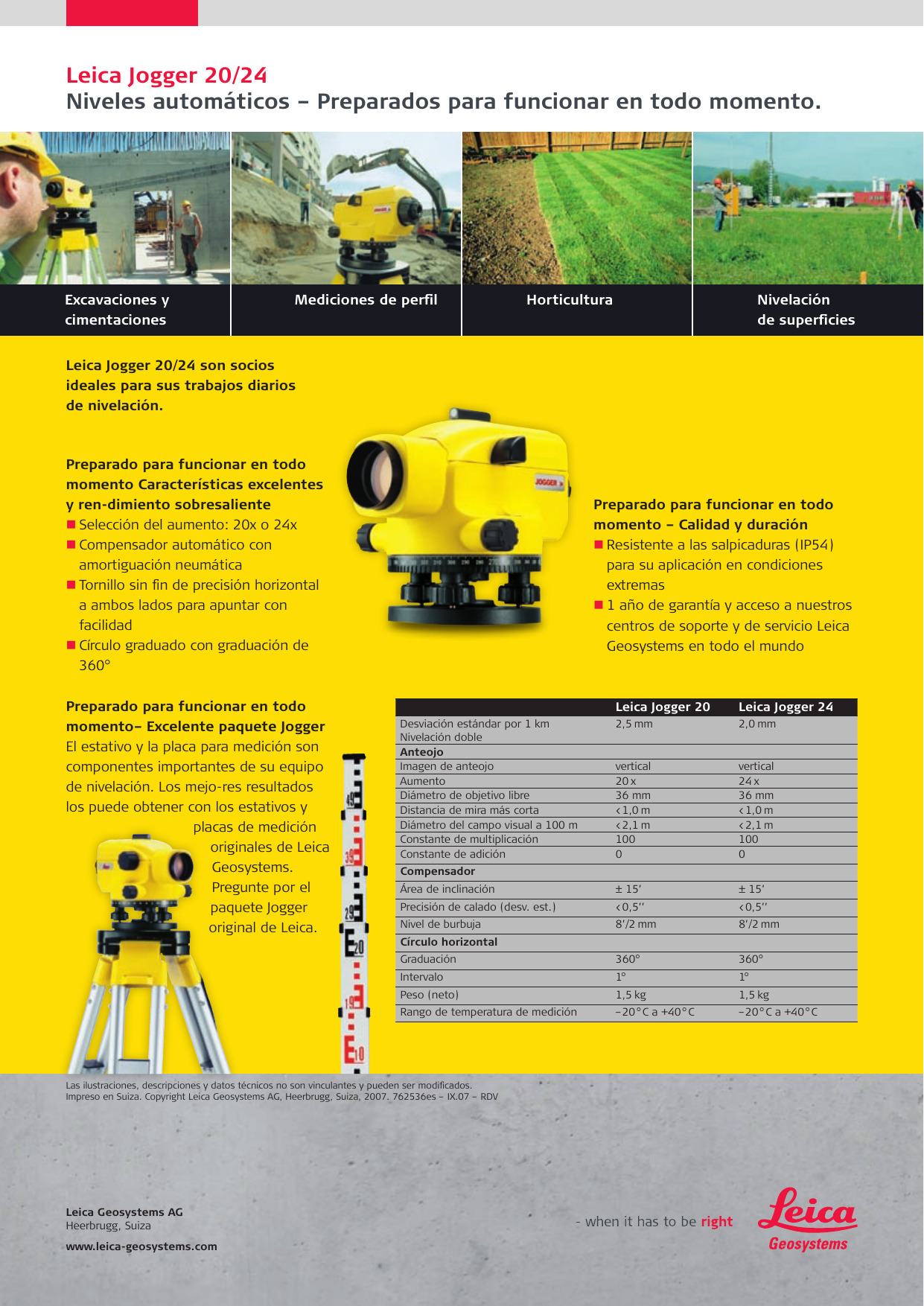 El trípode y el personal son partes importantes de cualquier equipo de nivelación. Obtenga mejores resultados con los trípodes y el personal originales aprobados de Leica Geosystems. Solicite el paquete original de Leica Jogger.