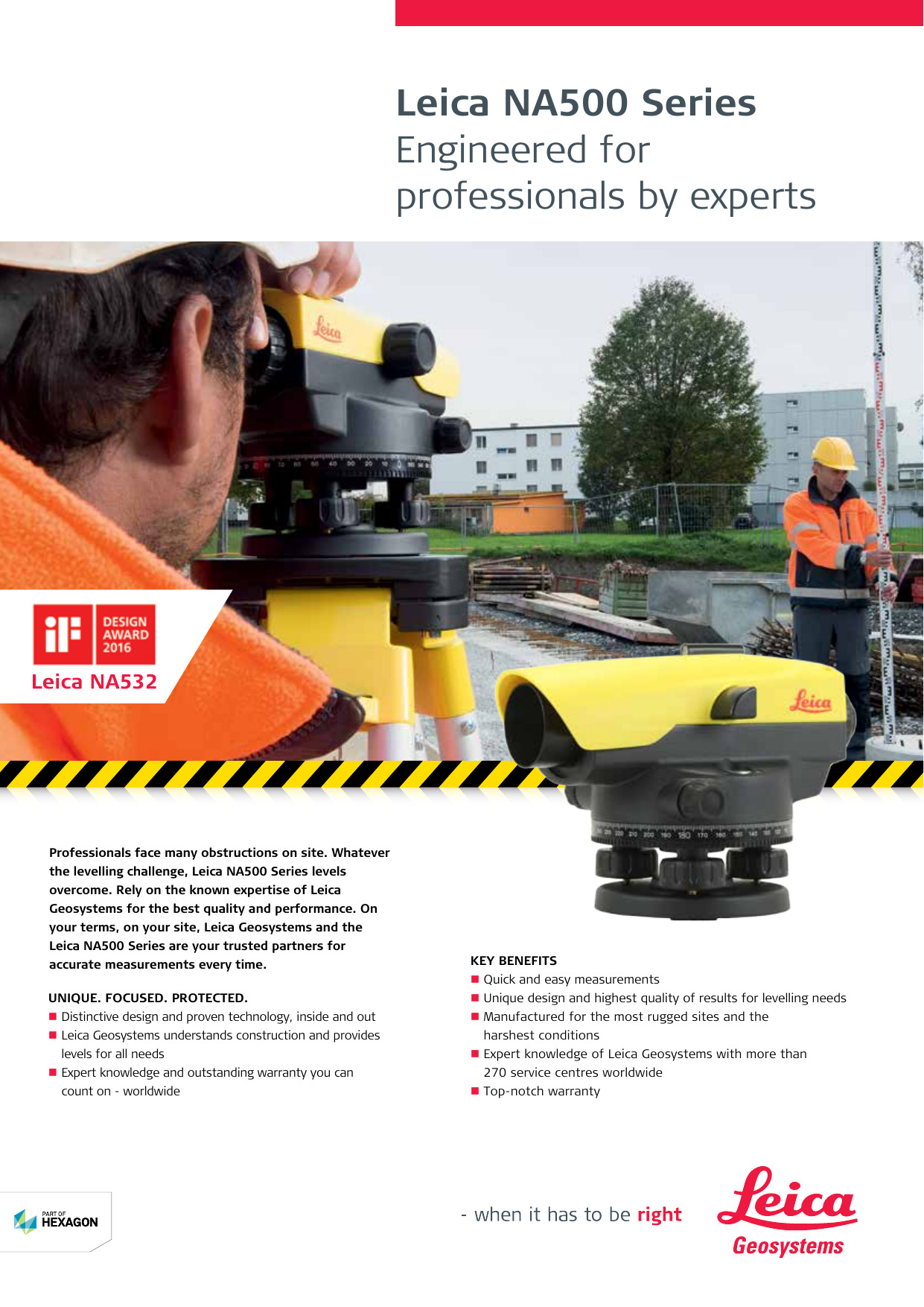 En otras palabras, en la obra, Leica Geosystems y Leica NA500 son sus mejores aliados para obtener mediciones precisas en todo momento.