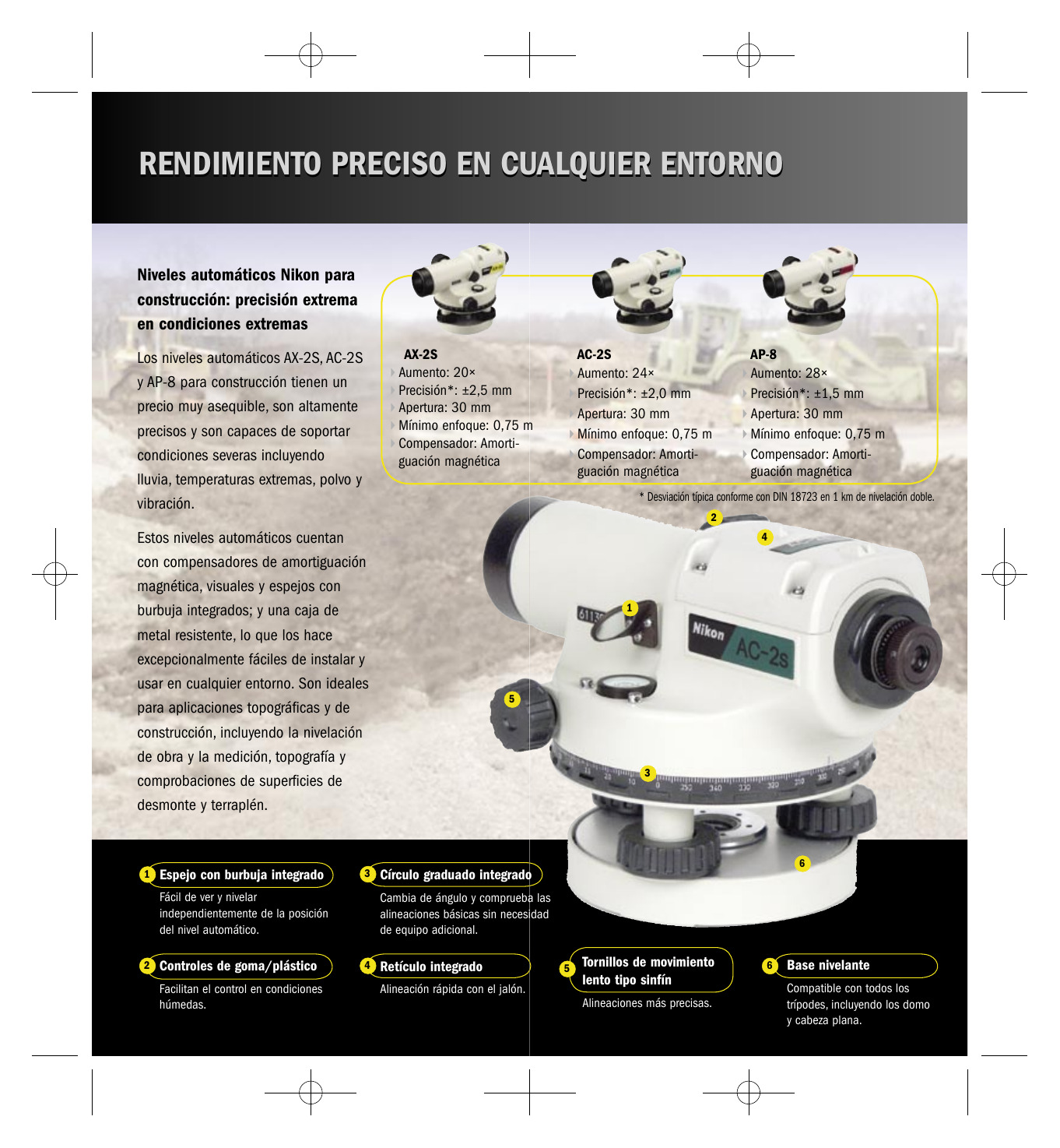 El compensador incorporado nivela automáticamente la línea de visión en un amplio rango de compensación de ± 16 pulgadas con una precisión de ajuste de ± 0.5 pulgadas.