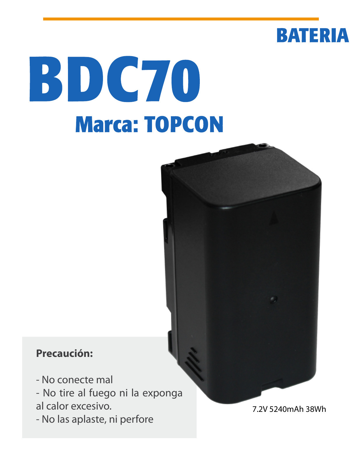 BATERIAS PARA ESTACION TOTAL – > MARCA: TOPCON -> MODELO: BDC70 ; realizamos entrega en las ciudades de Lima, Arequipa, Cusco , Moquegua , Tacna , Ica , Chiclayo , Trujillo, Cajamarca, Piura, Tumbes, iquitos, Huancayo , Ayacucho , Pucallpa, Huanuco , Cerro de Pasco ; llevamos mas de 10 años comercializando TOPCON en Peru , somos especialistas importando baterias para estacion total, baterias , bateria para estacion total topcon, bateria para estacion total es-105Batería TOPCON BDC70 (para ES-105)